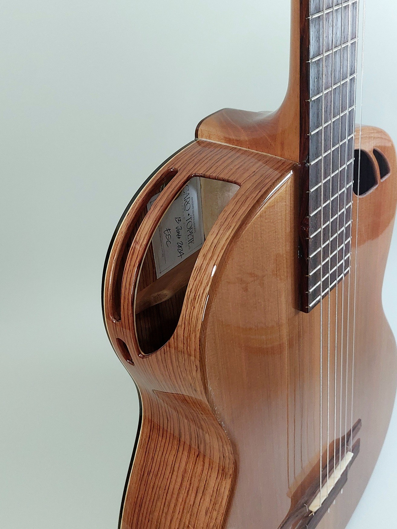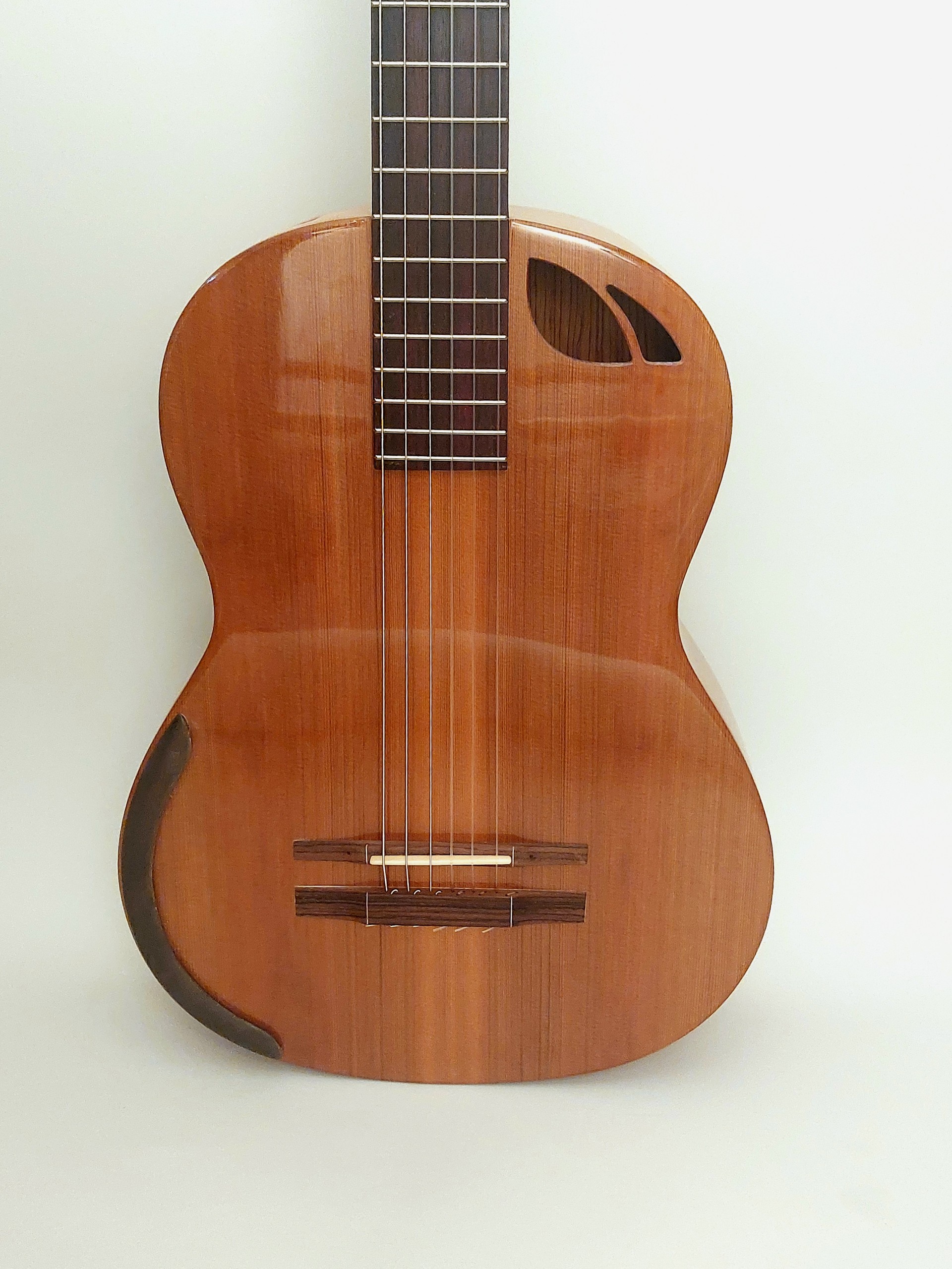 Date# 13 Junio 2024 Beautiful guitar with dark cedar top and palo escrito back and sides. A great playing guitar with a full, warm tone at a highly accessible price point. Direct price only $995 plus tax and shipping.