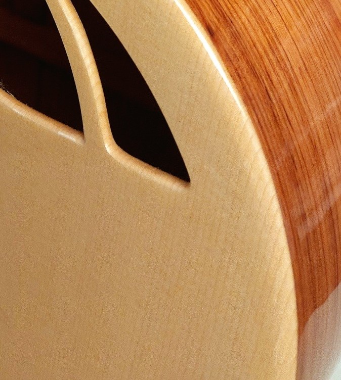 While edge binding protects the edges of the guitar body it also dampens vibration of the soundboard and acoustic responsiveness. As a result, there is no top binding on Caro Topete guitars.