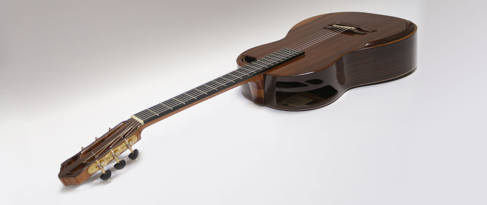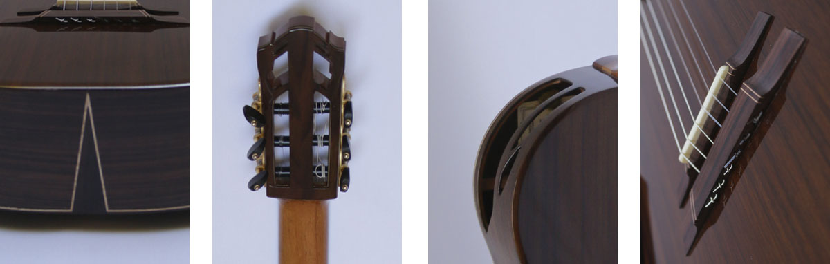 The distinctive design of the headstock is inspired by gothic cathedral, a truly stunning instrument.