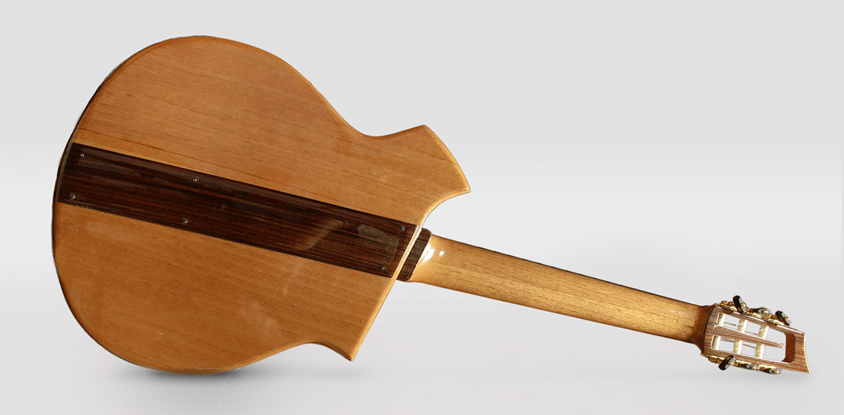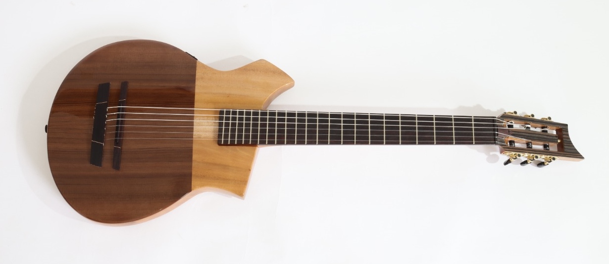 The NS guitar is a chambered solid body instrument with nylon strings and a Barbera Transducer which faithfully recreates the sound of a nylon string guitar without feedback issues.